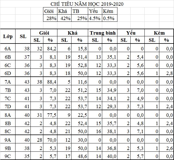 Chỉ tiêu cho các môn học năm học 2019-2020 của trường THCS Hải Xuân
