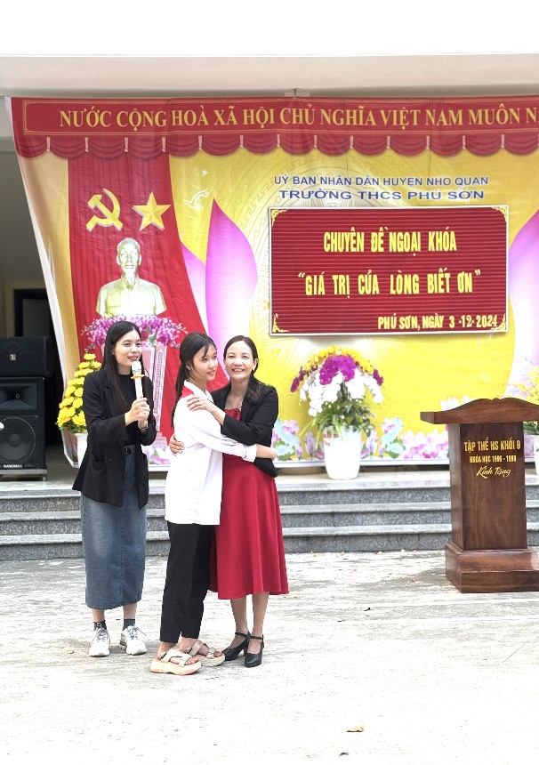 Sau gần hai giờ chia sẻ, bài giảng của diễn giả đã phần nào đánh thức được những trái tim non trẻ “đã hơn một lần, dù vô tình hay cố ý làm buồn lòng cha mẹ, thầy cô” và những giọt nước mắt tận đáy lòng cũng đã rơi bởi những câu chuyện về lòng biết ơn sâu sắc nghĩa tình. Kết thúc buổi chuyên đề cô đã gửi đến các em học sinh thông điệp “Ráng thêm chút nữa” và “Không từ bỏ” với hy vọng các em sẽ cố gắng học tập, cố gắng vâng lời ông bà, cha mẹ, thầy cô và không từ bỏ những ước mơ, hoài bão của mình.